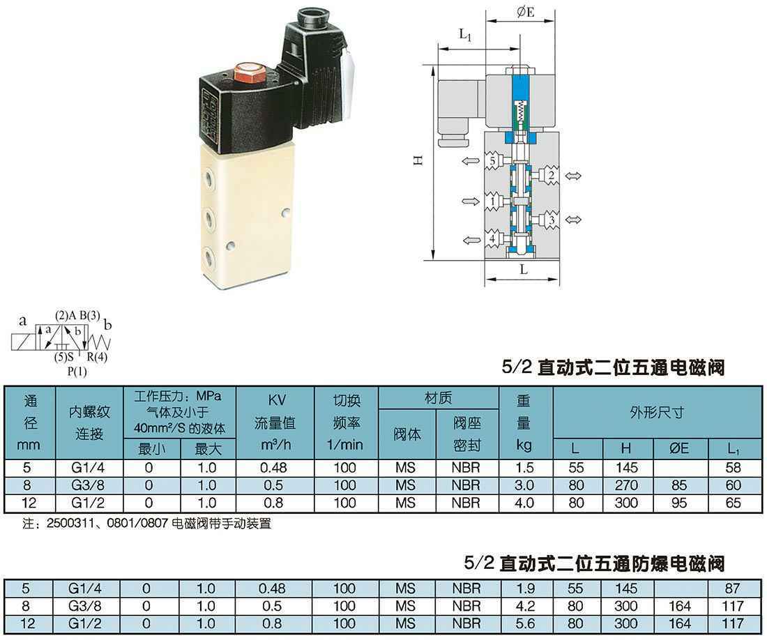 A102ED-SFO 25000系列 5/2直动式二位五通电磁阀及直动式二位五通防爆电磁阀